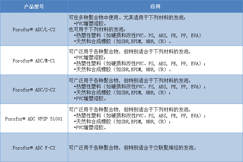 应用范围。其中L-C2和M-C1与活化剂并用后,特别适用于加工温度较低或要求发泡效率较高的场合。